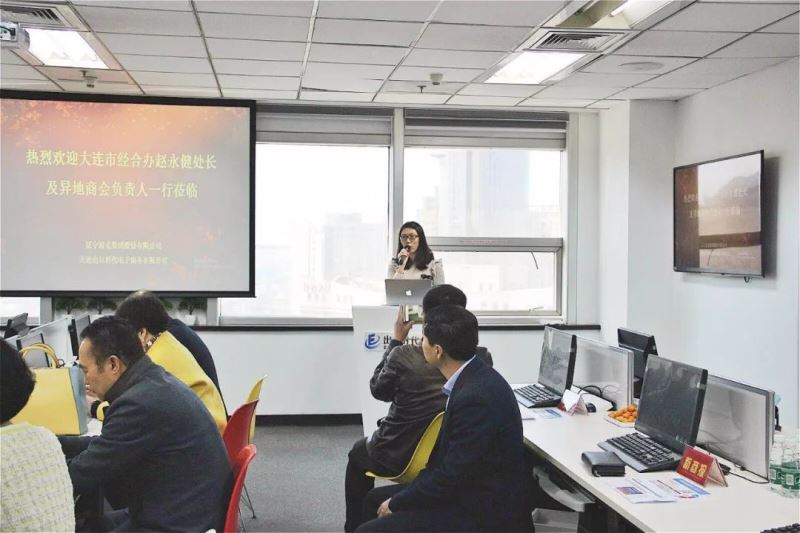 为助力大连市优化营商环境,帮助有需求的异地在连企业了解本市贸易便利化服务及外贸新业态,促进出口时代平台与各异地商会实现资源共享、优势互补、互利共 赢,2018年4月11日下午,大连市政府经济合作交流办公室组织25家在连异地商会负责人考察调研大连市外贸综合服务平台—出口时代。