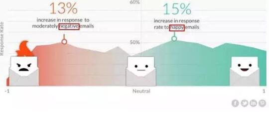 同样的,极端负面的邮件自然也不会有高的回复率,但是适度负面的邮件,同样比平平无奇的回复率高出13%。