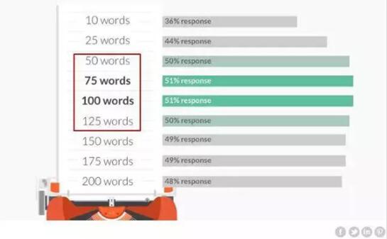 电子邮件的最佳长度在50-125个单词之间,所有这些长度的回复率均高于50%。