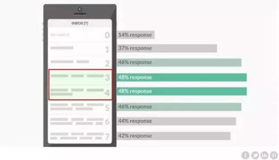 但调查结果显示的长度比我们预期的要短,仅有3-4个单词的主题(不包括Re:和Fwd:)收到的回复率竟然是最高的。