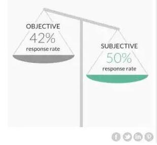 邮件的主观表达越多,回复率越高。数据显示,带有主观性的回复率高达50%,比客观描述的回复率高8%。但这边要注意的是你的主观表述是否是积极的,是否是对业务推进有利的。
