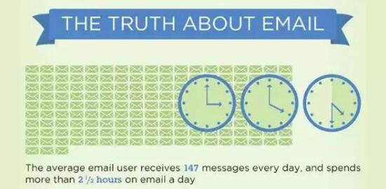 研究表明,经常使用邮件沟通的人每天会收到147封邮件,花费2.5小时处理。