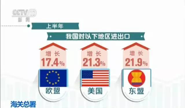 与 此同时,我国对传统市场进出口全面回升,对部分“一带一路”沿线国家进出口增长。上半年,我国对欧盟、美国和东盟进出口分别增长17.4%、21.3%和 21.9%,三者合计占我国进出口总值的41.4%,同期,我国对俄罗斯、巴基斯坦、波兰和哈萨克斯坦等国进出口分别增长33.1%、14.5%、 24.6%和46.8%。