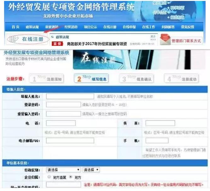 1、企业确定符合展会补贴申报条件,在中小企业国际市场开拓资金网络管理系统完成注册。(外经贸发展专项资金网络管理系统:http://www.smeimdf.org/)