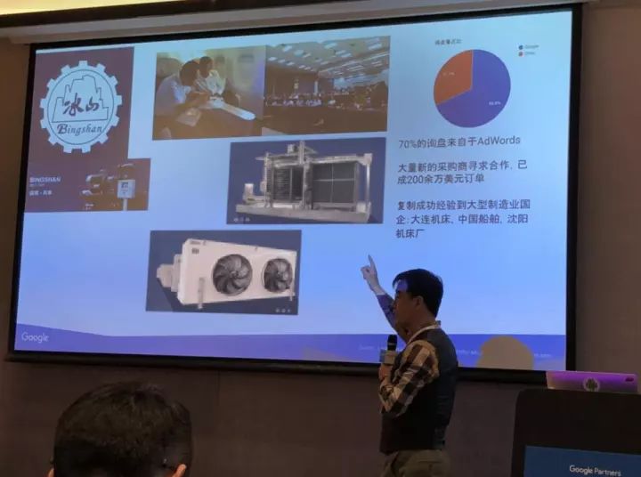 其中出口时代所负责的客户——大连冰山集团作为成功案例被Google渠道部渠道经理TOM重点提及。出口时代为客户所做的外贸转型策略、紧盯ROI所做的一系列优化工作为大连冰山集团带来了整个集团70%的询盘占比,成交多笔订单。Google希望将这种经验再复制到东北的其他企业中去。
