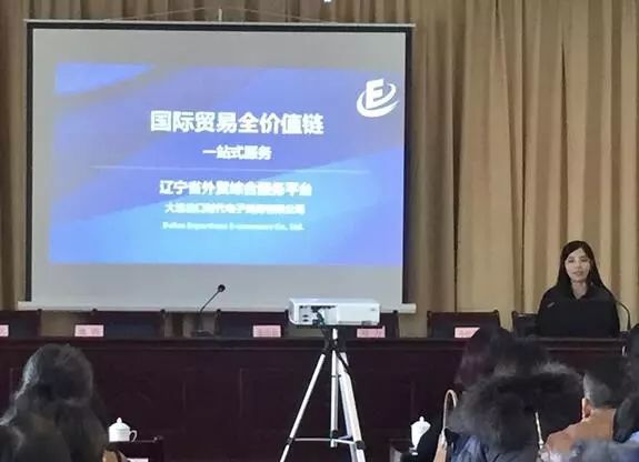 辽宁省商务厅外贸管理处副处长池涛致辞,介绍了举办外贸综合服务企业政策培训会的目的和作用,提出外贸综合服务企业下一步工作要求。