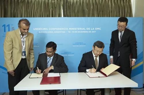 12月12日,中国商务部副部长王受文与毛里求斯常驻联合国日内瓦办事处特命全权大使达拉多在世贸组织第十一届部长级会议期间签署《中华人民共和国商务部和毛里求斯共和国外交、地区一体化和国际贸易部关于启动中国—毛里求斯自由贸易协定谈判的谅解备忘录》,宣布正式启动中毛自贸协定谈判。