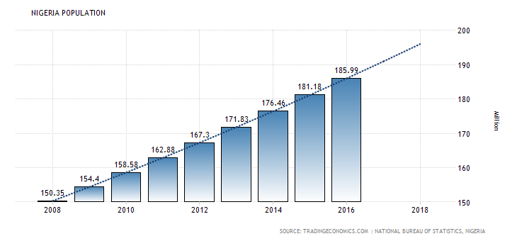 图1:尼日利亚人口:2008-2018年尼日利亚人口数量呈直线上升