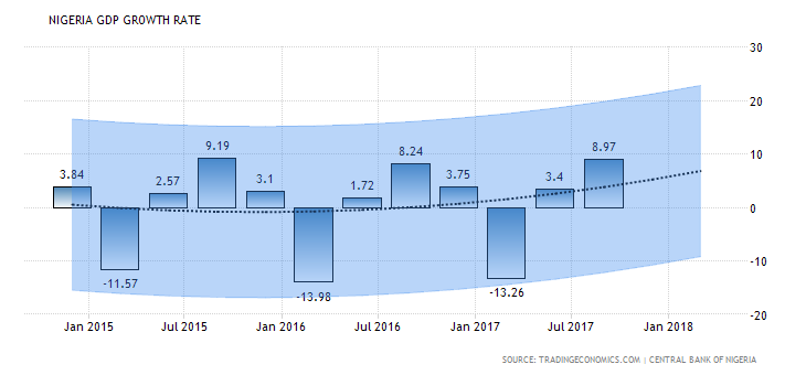2017年7月,尼日利亚GDP增长率达到8.97%,2018年GDP增长率稳步增加。