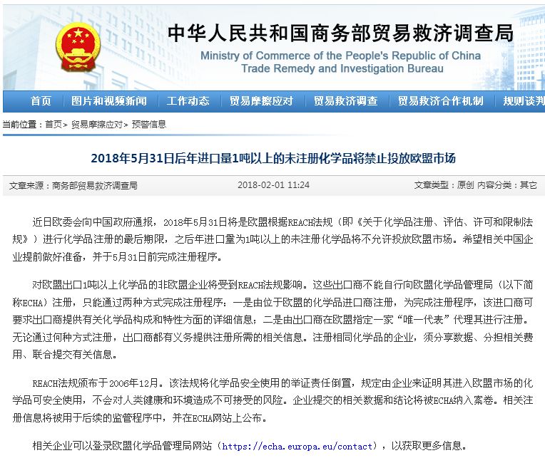 最后,再次提醒国内化工品商!5月31日前,请务必办理化工品注册,否则出口的化工品将禁止投放到欧盟市场!!