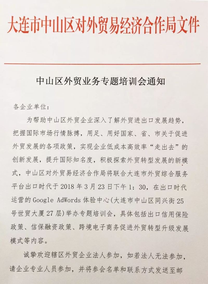 大连市中山区对外贸易经济合作局针对此次活动通知如下:
