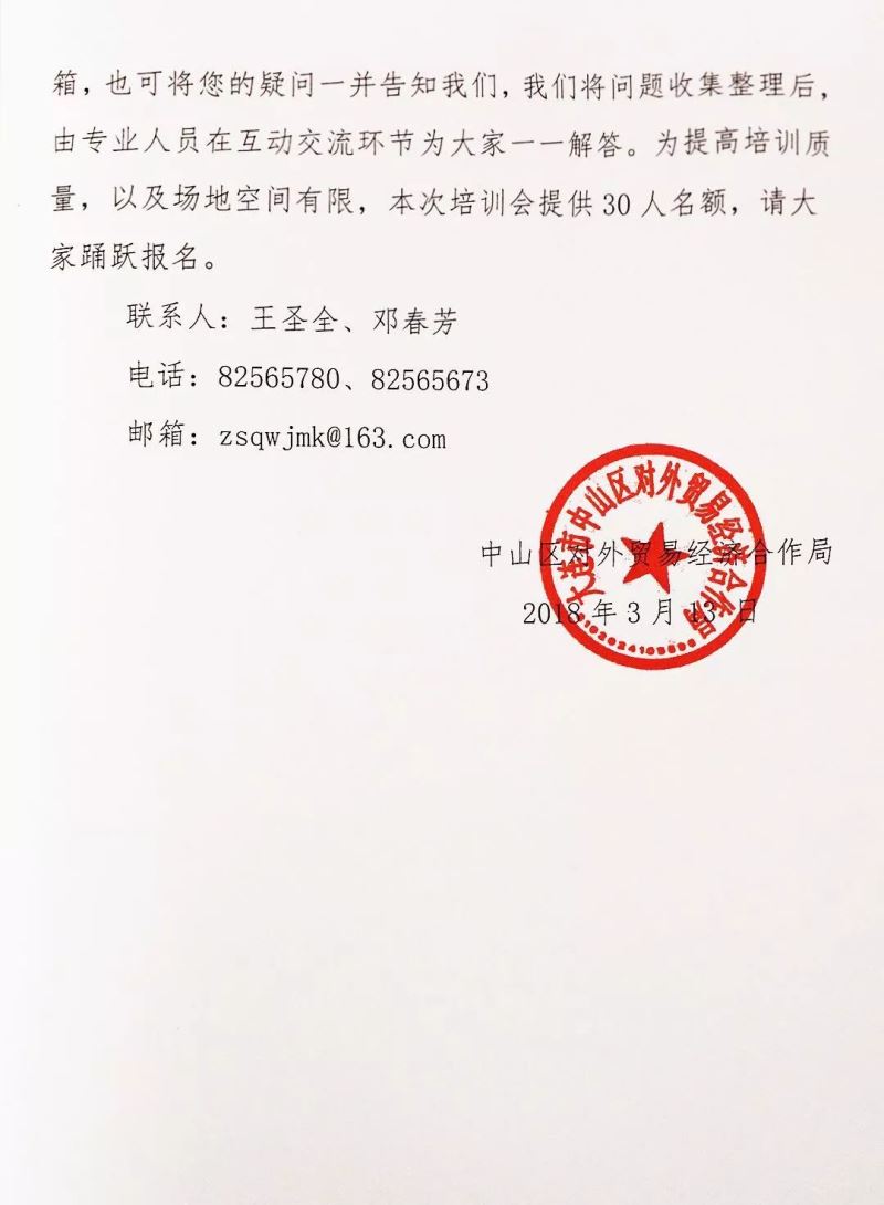 本次培训会只针对出口型企业高管,仅限30人,名额有限,欲报从速。